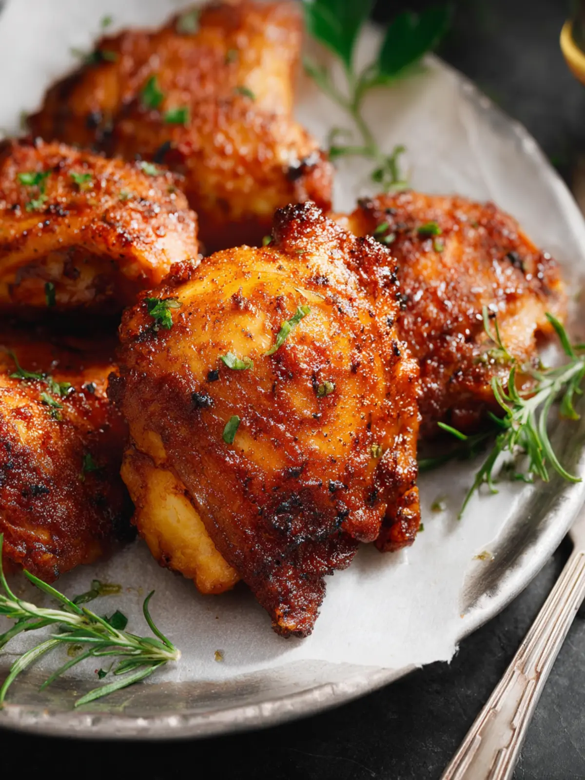 Once your chicken thighs are air-fried to golden perfection, resist the urge to dig in right away. Allow them to rest for about 5 minutes. This brief pause lets the juices redistribute throughout the meat, making each bite more succulent and enjoyable. Trust me, it’s worth the wait!