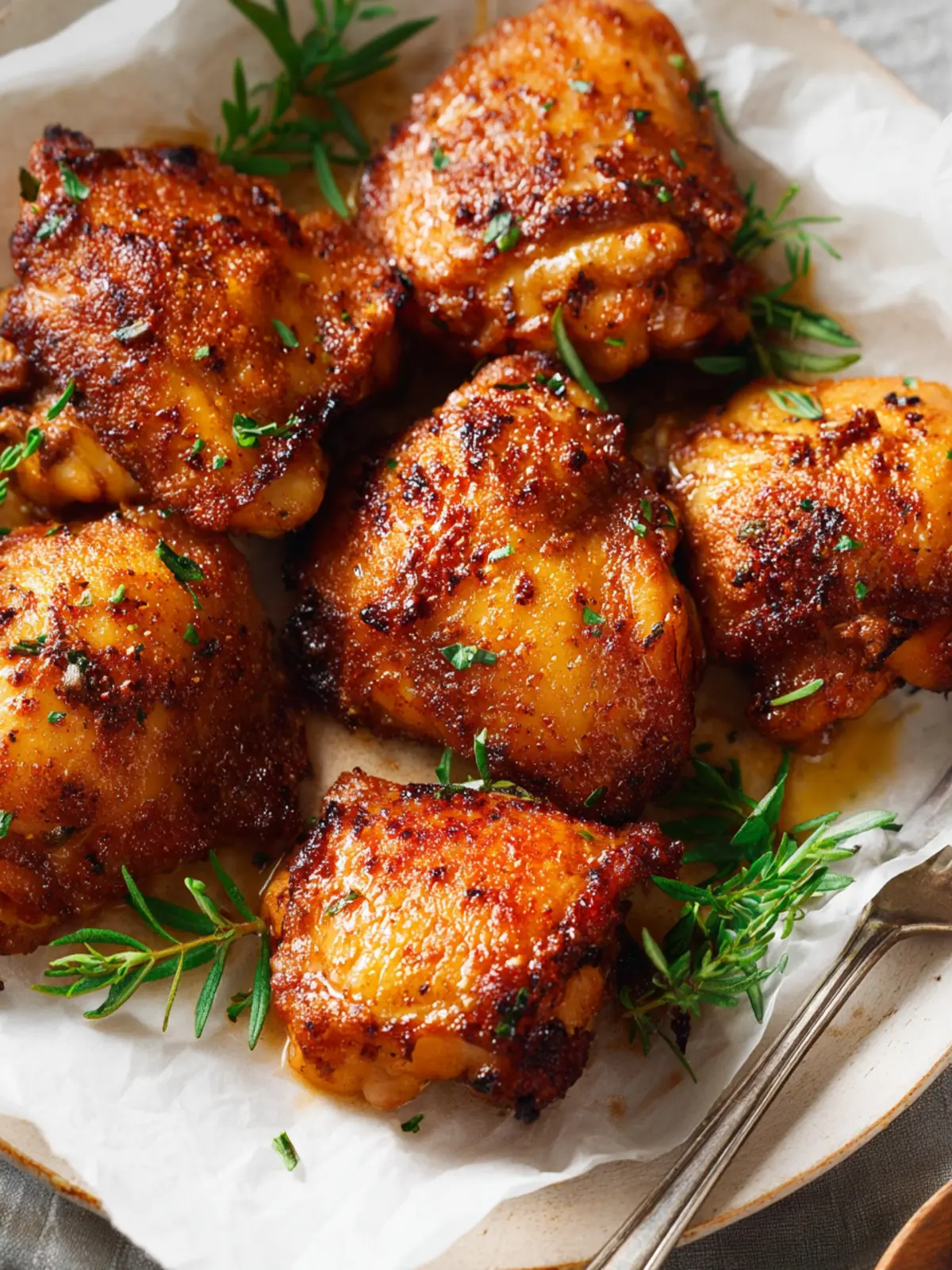 Seasonings: The magic really happens with the spices. A blend of garlic powder, onion powder, smoked paprika, salt, and pepper gives these thighs a delightful kick. Don’t hesitate to experiment with your favorite herbs; rosemary or thyme can elevate this dish even further.