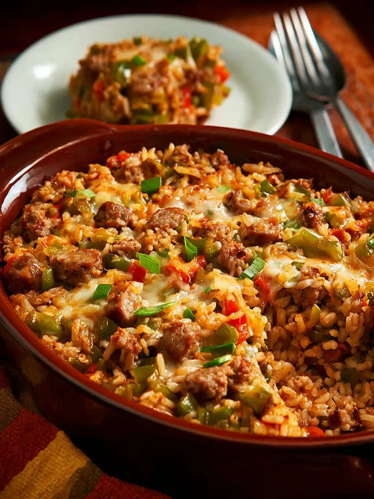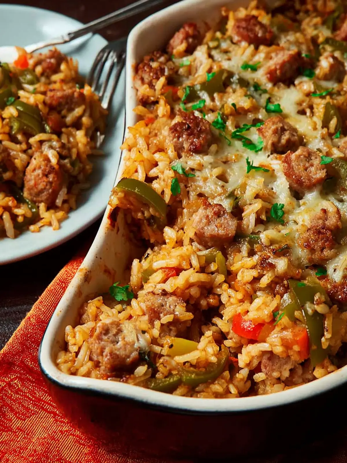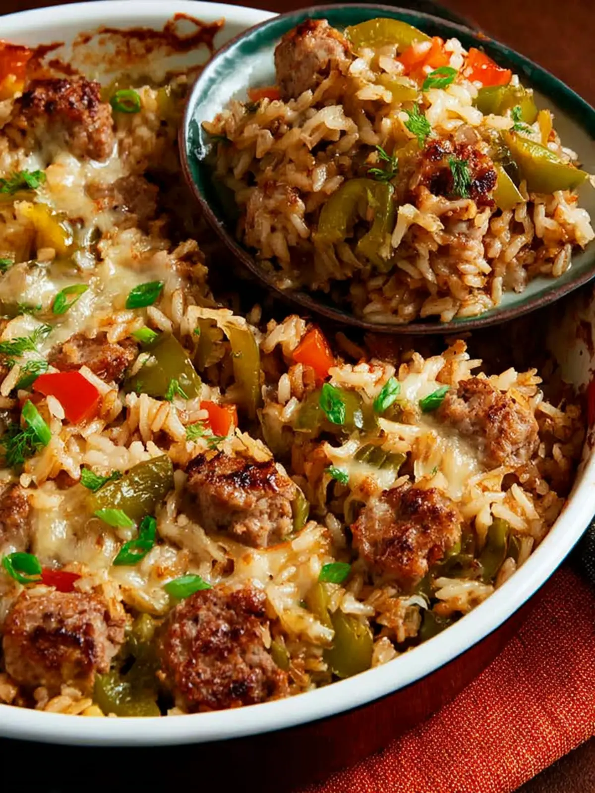 Brown Rice Casserole: Comforting Sausage and Peppers Delight