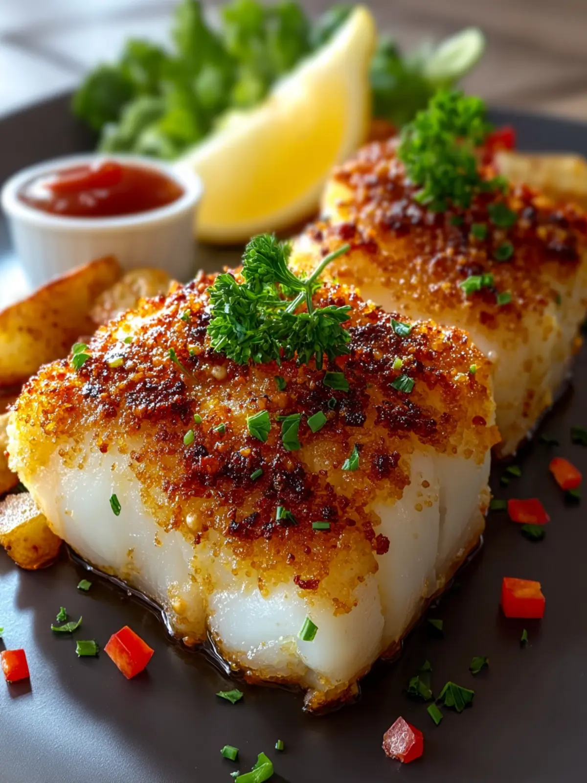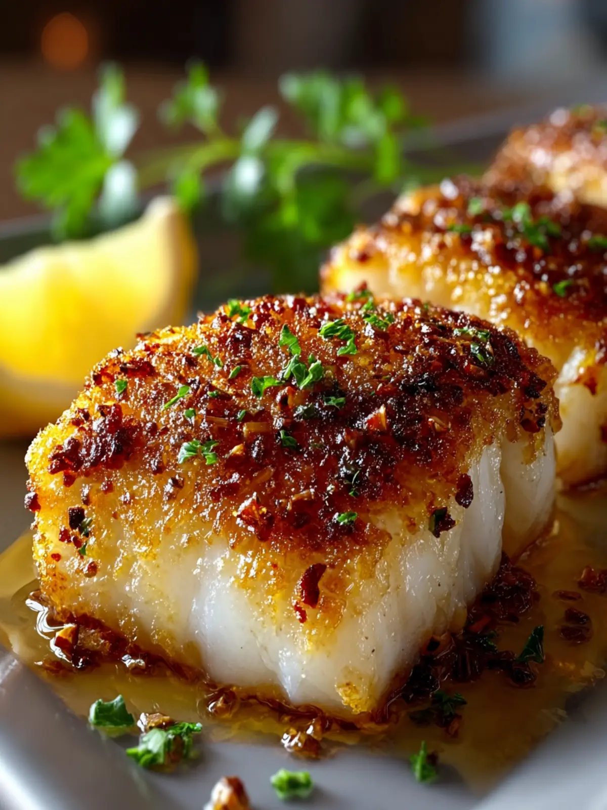 Lemon: Fresh lemon juice adds acidity, brightening up the dish and perfectly complementing the rich fish. A squeeze over the cooked cod can bring everything together beautifully.