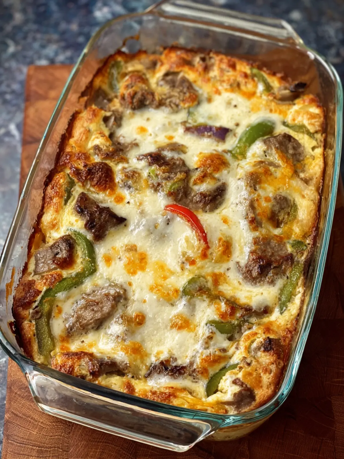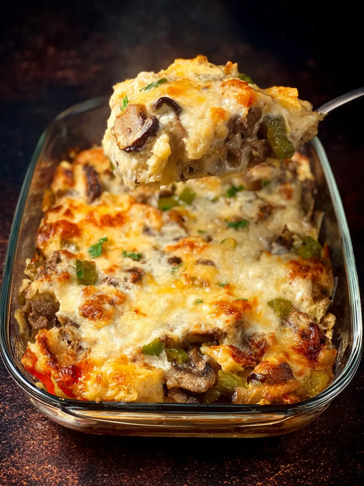 Easy Keto Low-Carb Recipe: Savory Philly Cheese Steak Casserole