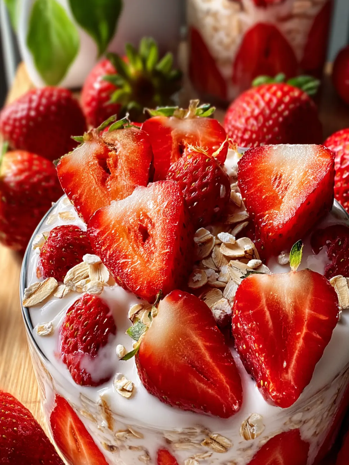 Crunchy Toppings: Sprinkle some granola or toasted nuts on top for that irresistible crunch. A handful of slivered almonds pairs beautifully with the creaminess of the oats and the sweetness of the strawberries.