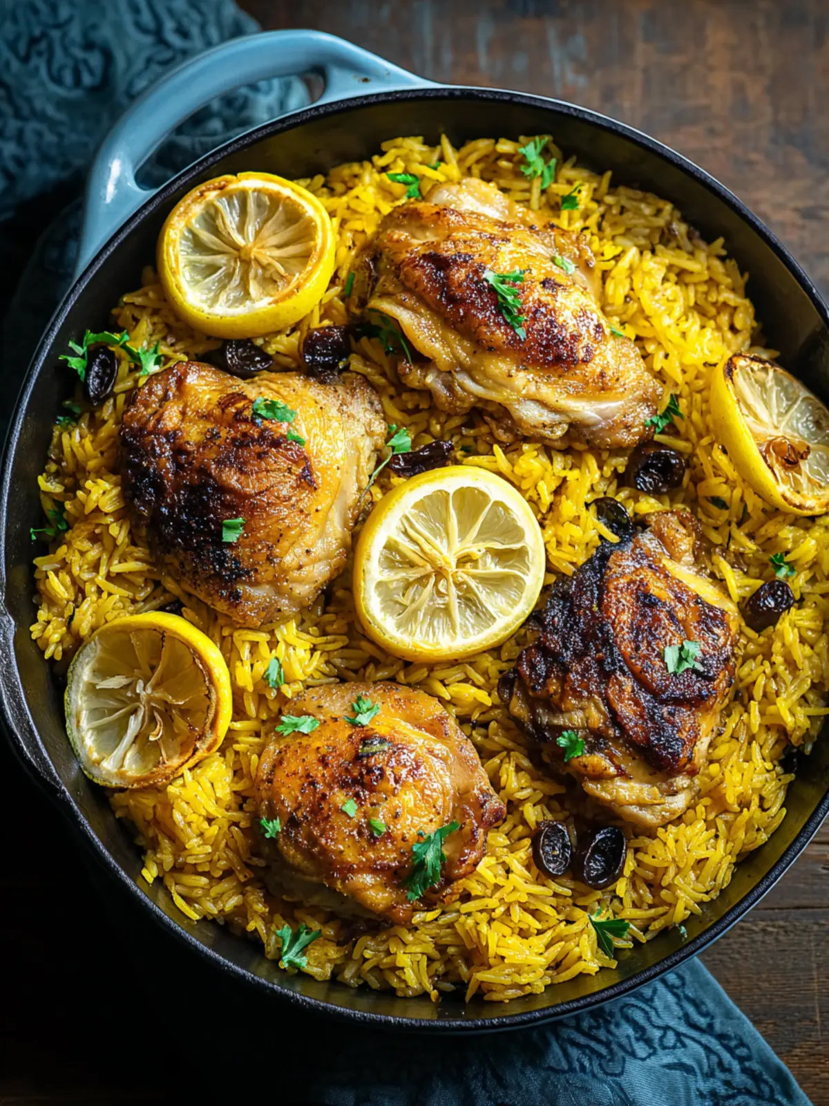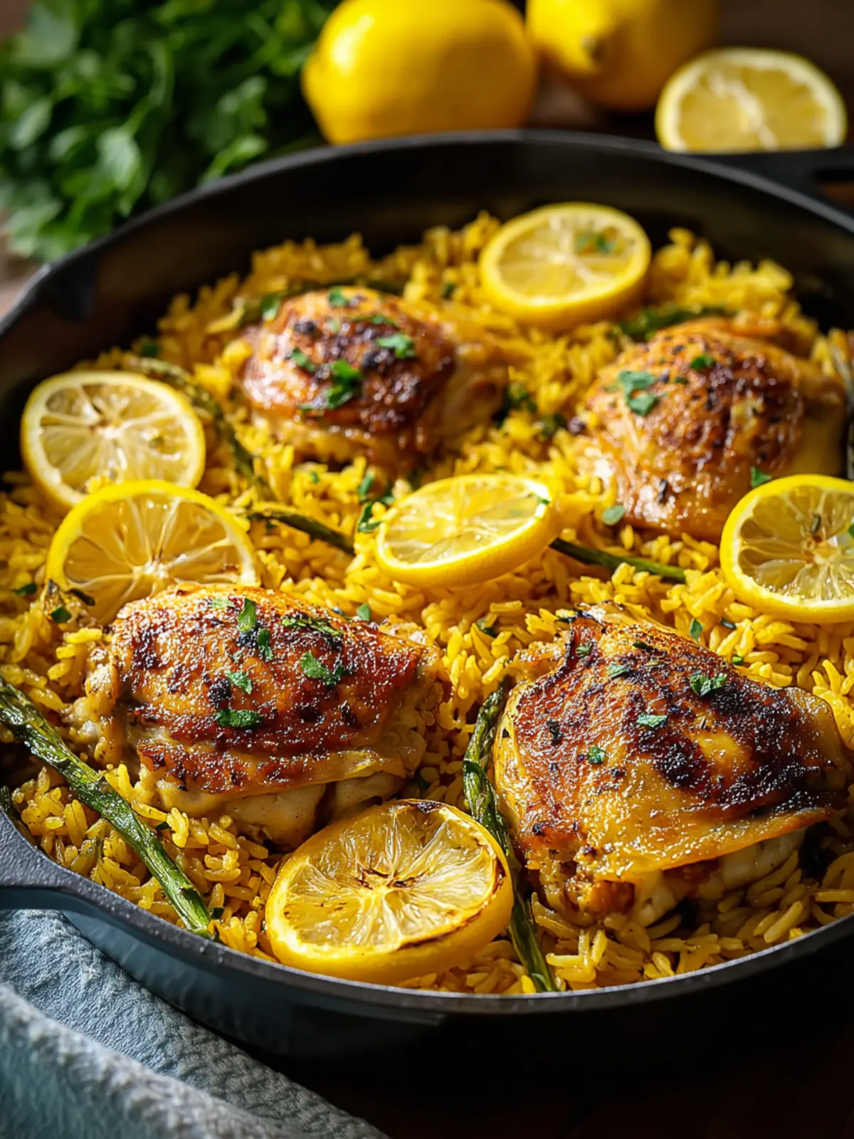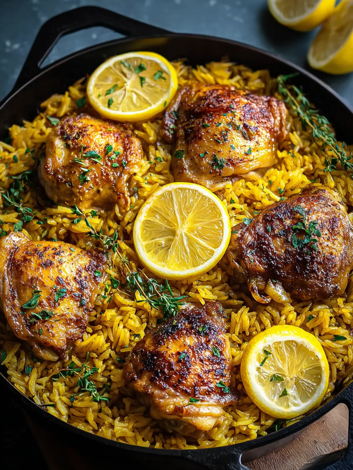 Perfectly Cooked Rice: The golden rice isn’t just a side; it’s a vibrant part of this dish. Cooking it in the same pan allows it to absorb the delicious juices from the chicken and lemons, elevating the entire meal.