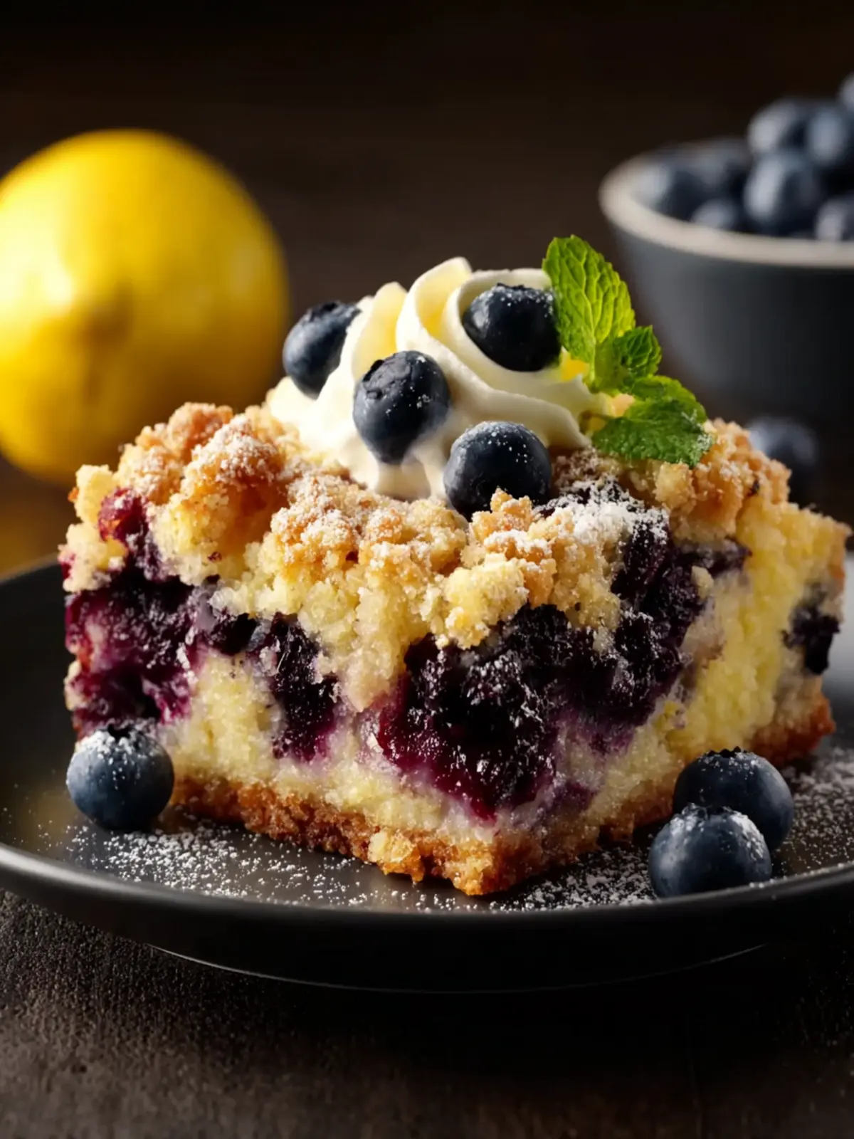Elevate your cake with a simple but impactful finish. A light dusting of powdered sugar or a zesty lemon glaze can add that extra layer of flavor and visual appeal. For a more indulgent approach, consider a sweet cream cheese drizzle or even a dollop of whipped cream on top. These finishing touches will make your lemon blueberry cheesecake dump cake not only delicious but also a showstopper at any gathering.