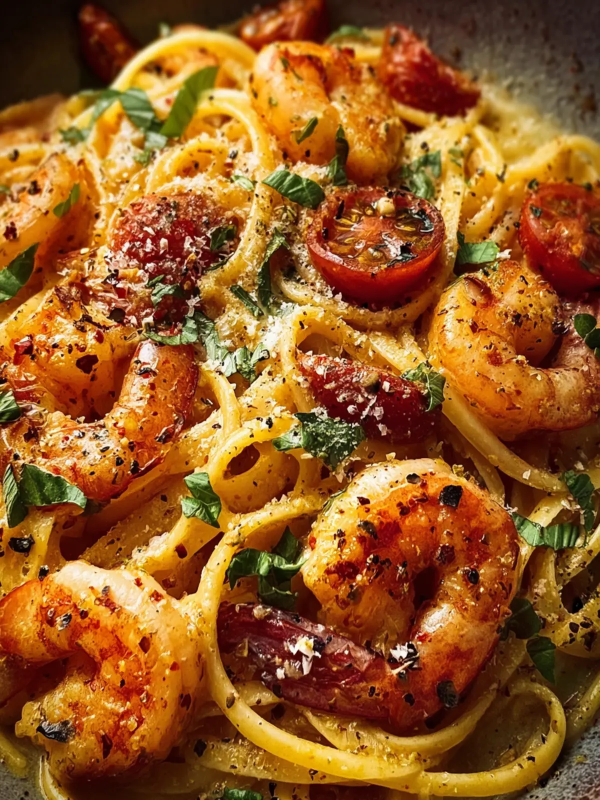A delicious creamy pasta dish featuring shrimp, sun-dried tomatoes, and a hint of spice.