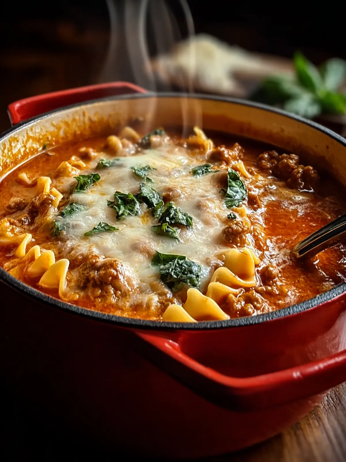A delicious and comforting lasagna soup loaded with rich flavors and nutritious ingredients.