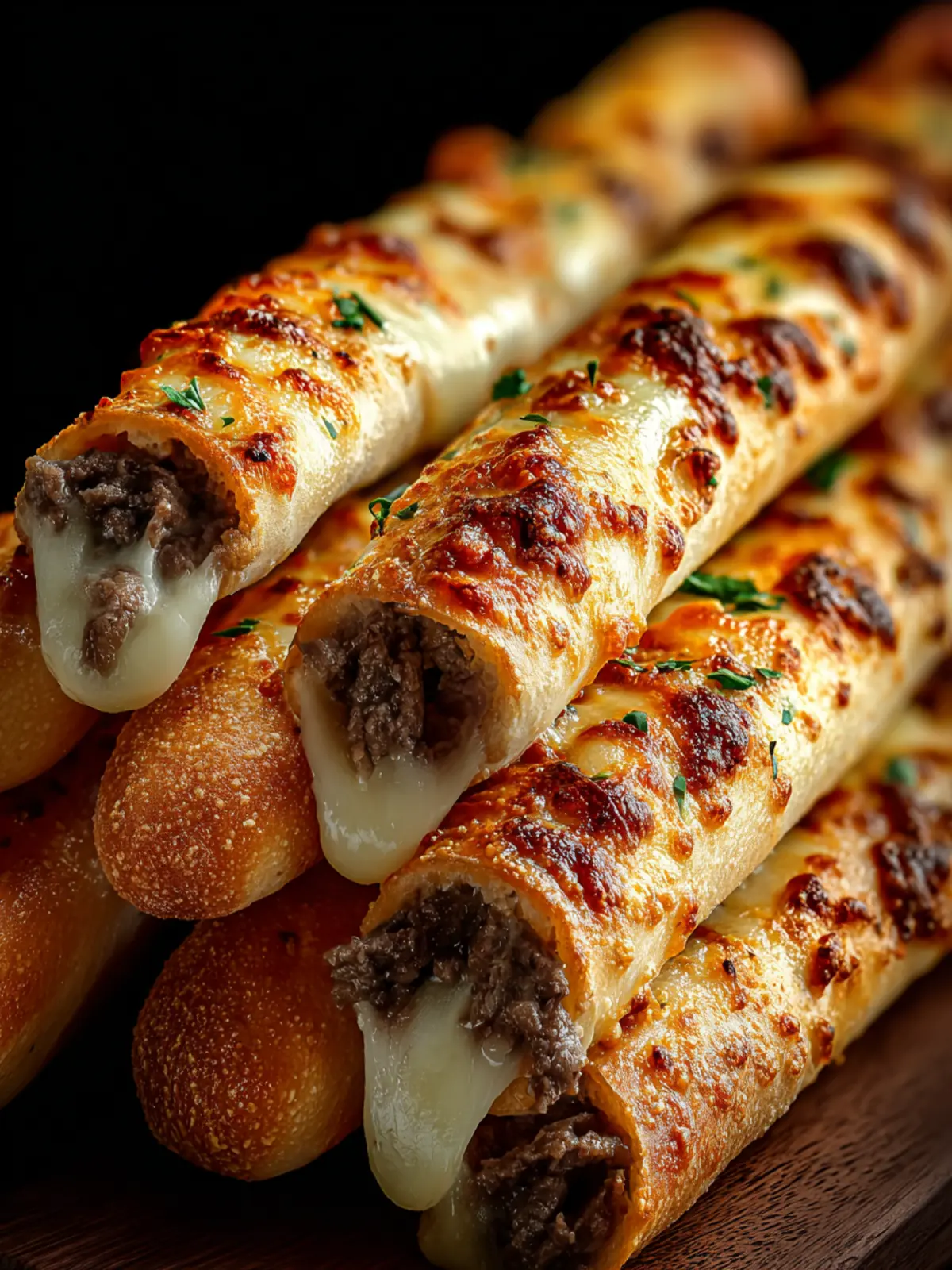 Delicious cheesy beef and veggie stuffed breadsticks that are crispy on the outside and ooey-gooey on the inside.